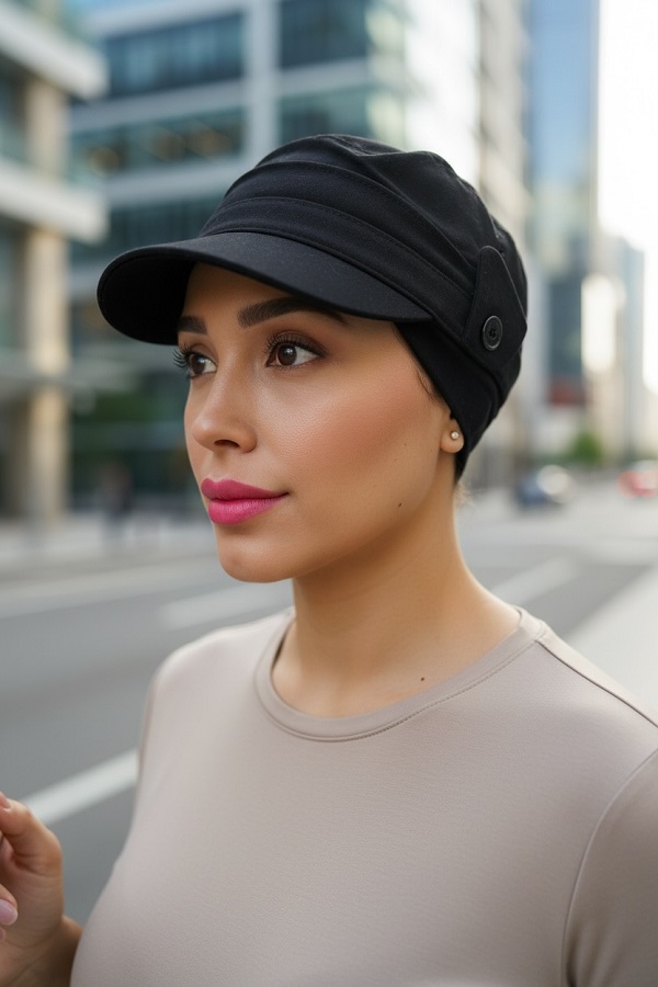 La Gorra Bella se ajusta de forma delicada, sin presionar ni generar molestias. Su estilo versátil se adapta fácilmente a diferentes looks, aportando seguridad y belleza en todo momento. Disponible en color negro. Talla única.