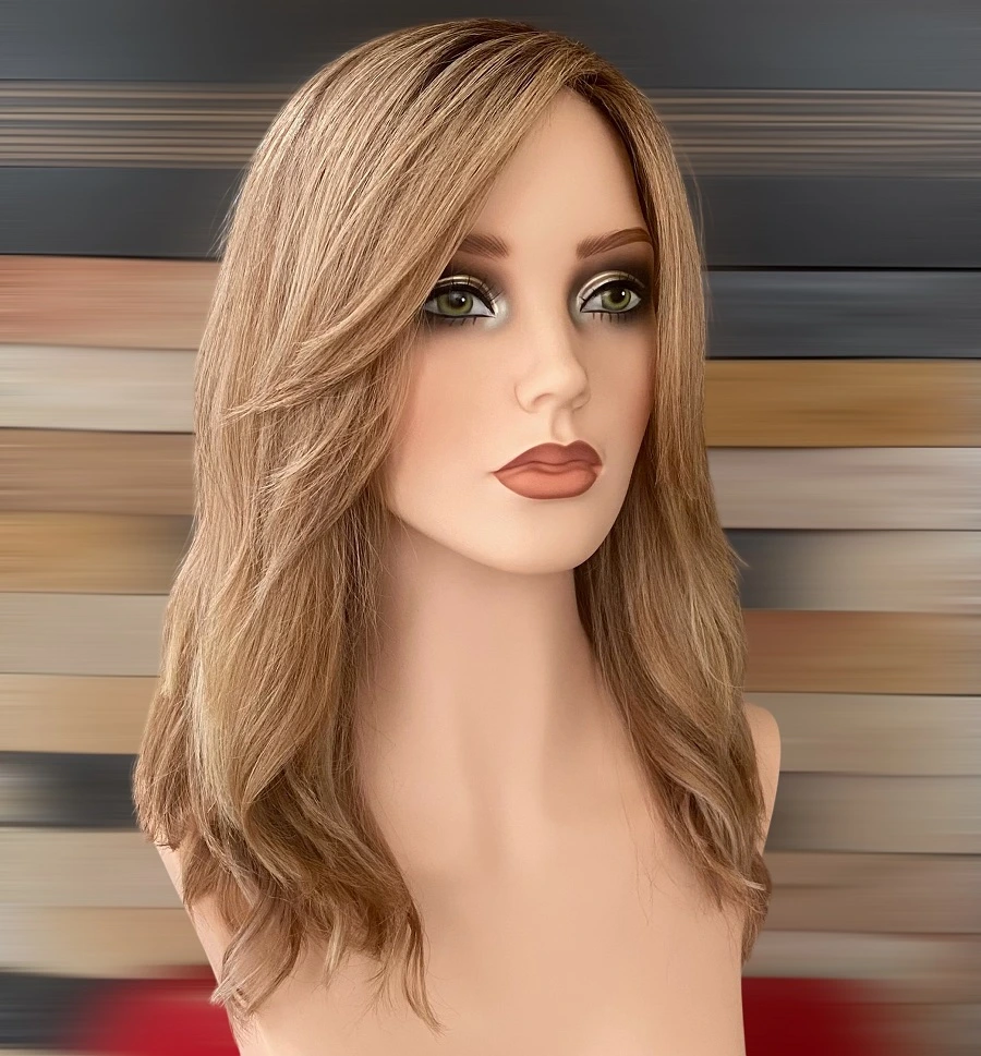 Hermosa peluca que tiene con un corte moderno en capaz , elegante y de tonalidad rubio . El cabello es 100% humano. con simulación de cráneo el cual está realizado con seda suiza de la más alta calidad, trabajado a mano pelo a pelo creando visualmente un cuero cabelludo natural, ligero y transpirable, multidireccional lo cual se puede peinar para cualquier dirección y realizar el peinado que se desee, como si fuera su propio cabello. Ajustable en los laterales de la parte interna para que quede a la medida de la cabeza. El monofilamento en el vértice la vuelve transpirable, el gorro es cómodo, suave, transpirable e hipo alergénico. Las pelucas están construidas en nuestro sistema SKINFIX concepto para un resultado de ventilación del cuero cabelludo y materias primas extremadamente suaves que ayudaran al acoplamiento de la sensibilidad. Todas nuestras pelucas fueron construidas y diseñadas para responder a las necesidades médicas especiales de los Clientes que sufren la pérdida de cabello debido a los procedimientos médicos como la radiación, quimioterapia y alopecia.
