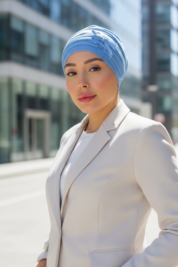 Turbante Celeste: tu refugio de calma, tu expresión de belleza real.