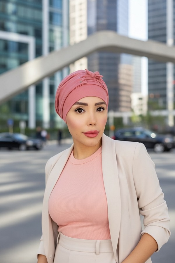 El diseño del Turbante Clara es práctico y femenino: fácil de colocar, sin necesidad de ajustes complicados, y con un acabado elegante que se adapta a cualquier estilo. Disponible en tono palo de rosa. Talla única.